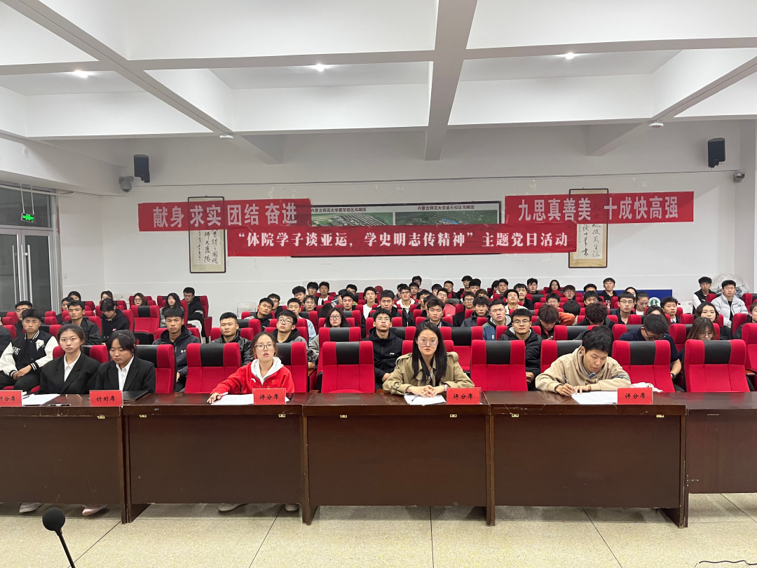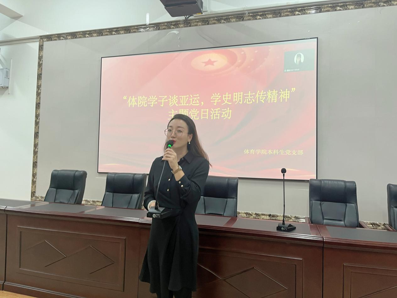 亚运精神承载着团结,友谊和进步的理念,它教会我们团结友爱,追求进步,超越竞争。作为新时代青年、作为中坚力量的入党积极分子,要坚持胸怀天下,树立全球视野,让爱国主义成为青春底色,让亚运精神薪火相传。世界杯官方网站本科生党支部紧密结合时事及学院特点,于2023年10月29日举办了“体育学子谈亚运,学史明志传精神”主题党日活动,让积极分子在谈亚运的过程中了解亚运会相关知识,激发学生的爱国情怀。