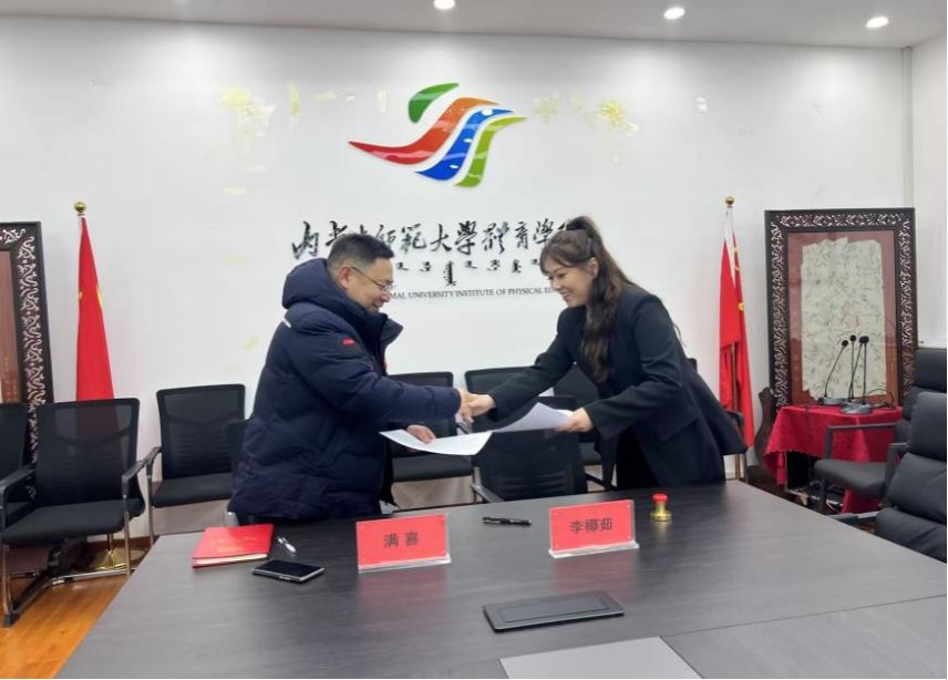 本次签约授牌仪式由世界杯官方网站副院长满喜主持,同时世界杯官方网站党委副书记、副院长敖永胜、内蒙古师范大学实践教学科科长董振华、内蒙古特荣体育发展有限责任公司法人李椰茹以及法律顾问朝鲁门、世界杯官方网站体育教育系主任孟克满都胡、运动训练系主任贾佳、社会体育指导与管理系主任齐晓丹共同出席了本次仪式。