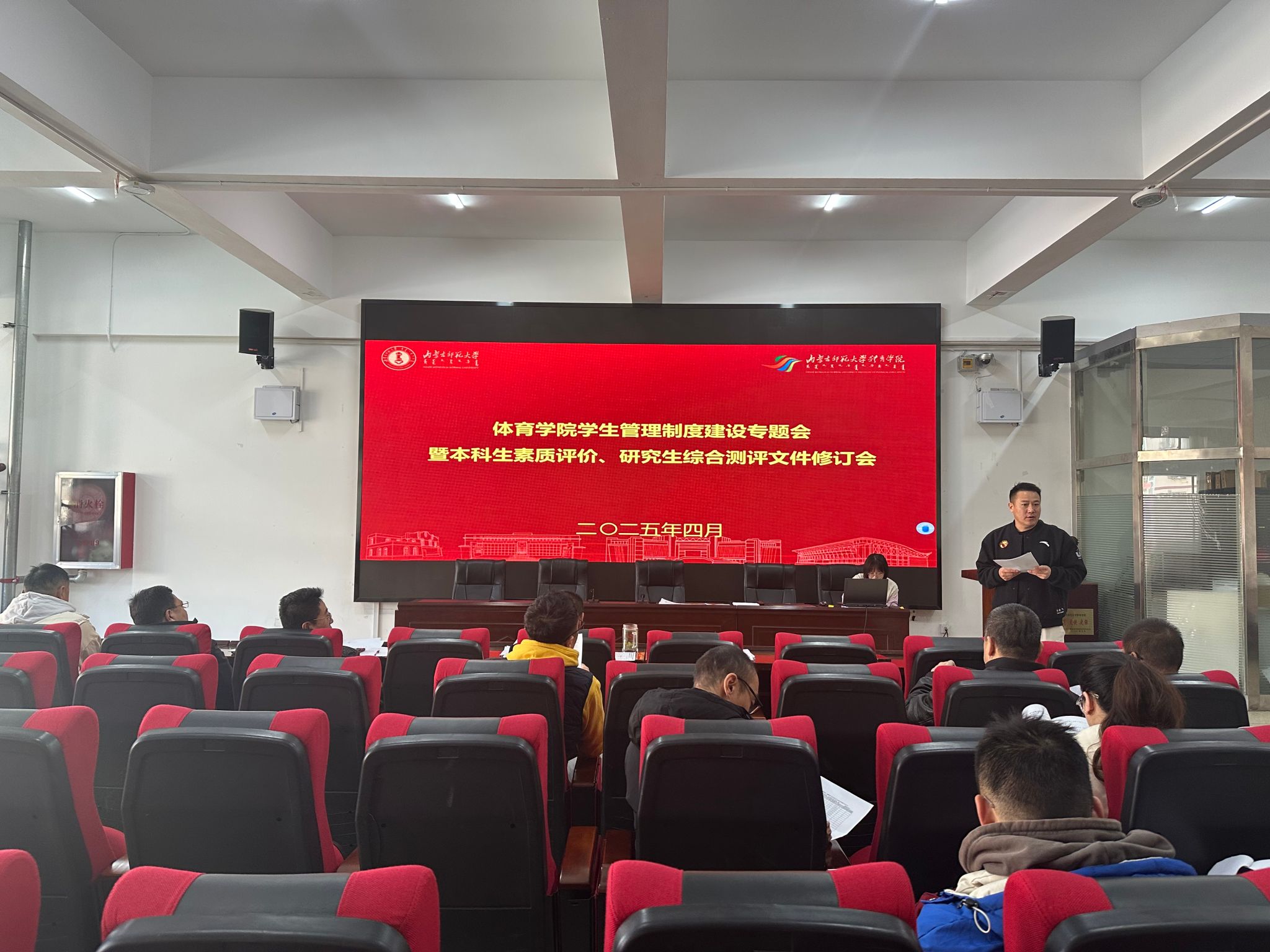 2025 年 4 月 2 日,世界杯官方网站在二楼多媒体教室召开了一场关于学生管理制度的专题会议,对本科生素质评价和研究生综合测评文件进行修订研讨。学院领导班子、教学委员会成员、班主任、教练员以及学生代表齐聚一堂,共同为完善学院学生管理与评价机制出谋划策。