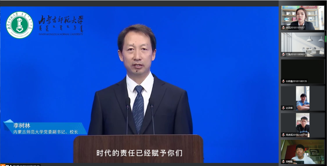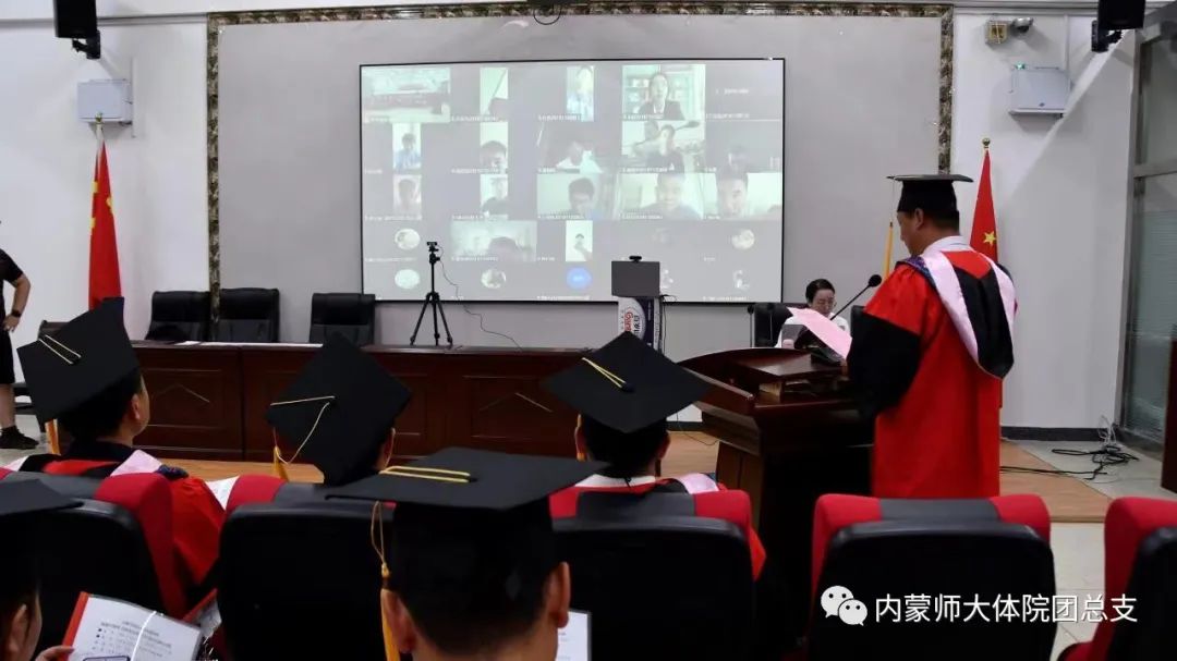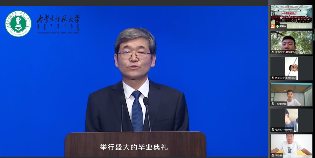 在毕业典礼上,世界杯官方网站全体教师和毕业生共同观看了内蒙古师范大学学校领导对毕业生的寄语视频。