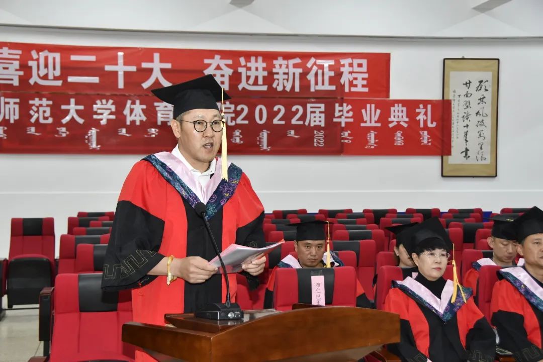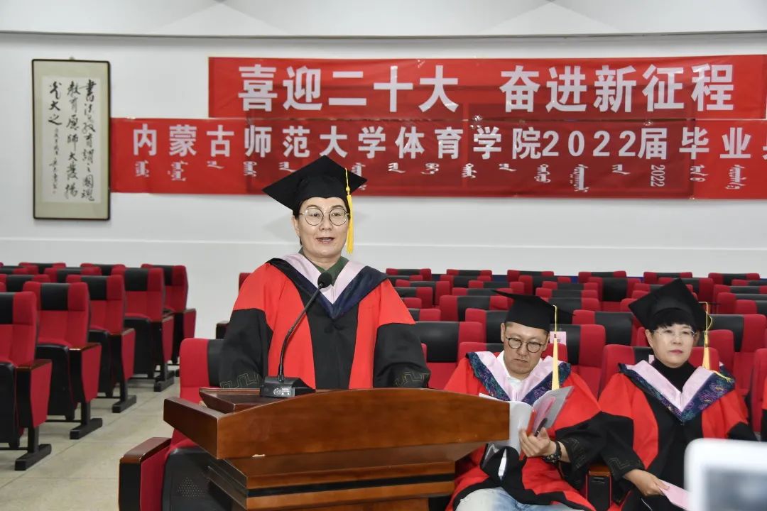学校学术委员会委员、世界杯官方网站院长、博士生导师高娃教授对全体毕业生送上深深祝福和殷殷嘱托:“忆往昔,峥嵘岁月,几度寒暑,夏熟秋实,冬去春来。几年来,你们因体育而相聚,因体育而改变,收获了强健的体格、健康的性格和完全的人格。请同学们记住,脚下的道路有千万条,母校始终是你前行时坚强的后盾。”