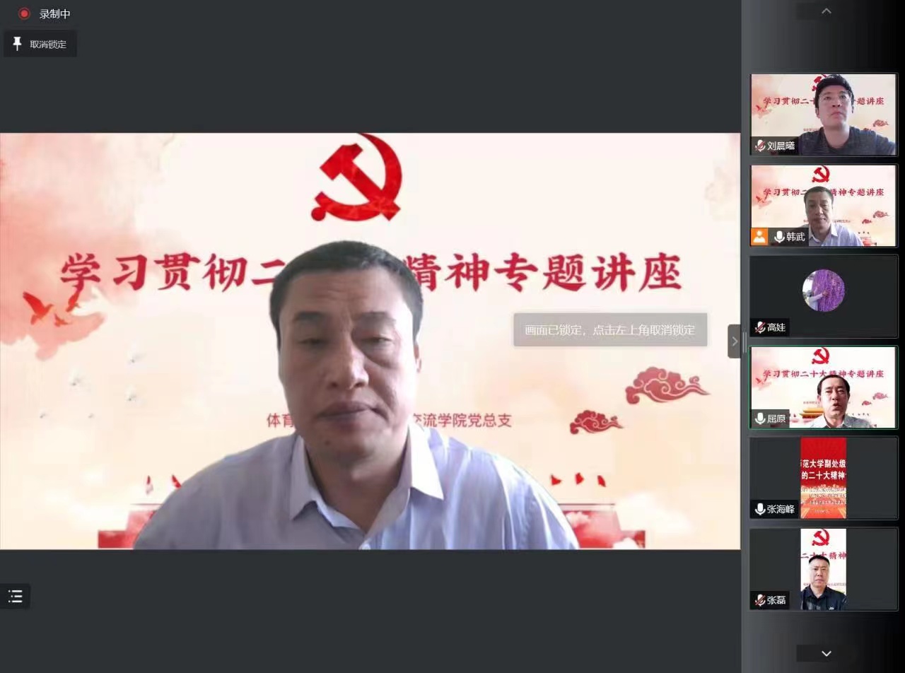 2023年1月10日上午,我校党委副书记张海峰为世界杯官方网站和国际交流学院作贯彻党的二十大精神专题讲座。参加讲座的有世界杯官方网站、国际交流学院各党支部书记及环节干部,讲座由世界杯官方网站党委书记韩武主持。