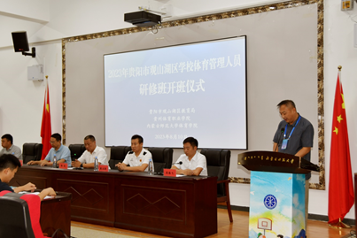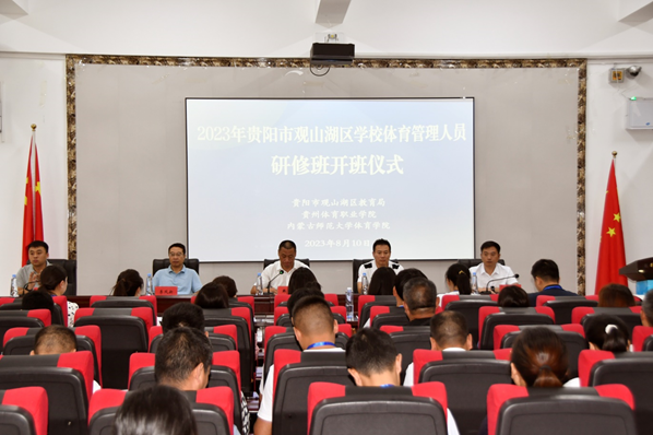 8月9日上午,2023年贵阳市观山湖区学校体育管理人员研修班在世界杯(中国)正式开班。世界杯(中国)党委书记韩武,世界杯官方网站党委副书记、副院长敖永胜,世界杯官方网站副院长李凤新,贵阳市观山湖区青少年艺术教育中心主任段练飞参加了开班仪式。开班仪式由贵阳市观山湖区教育局团委书记崔鹏主持。