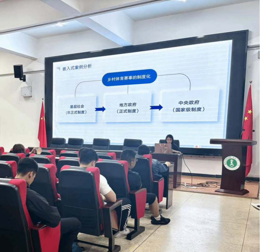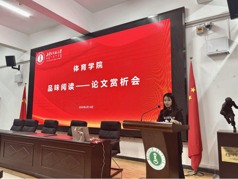 2022级体育人文社会学专业学生代表贺倩楠赏析论文《乡村振兴背景下乡村体育赛事发展的制度逻辑分析—基于“村 BA”赛事的制度化研究》。介绍了嵌入式案例研究法的应用方法,提出了创新科研方法以及论证资料收集的重要性。